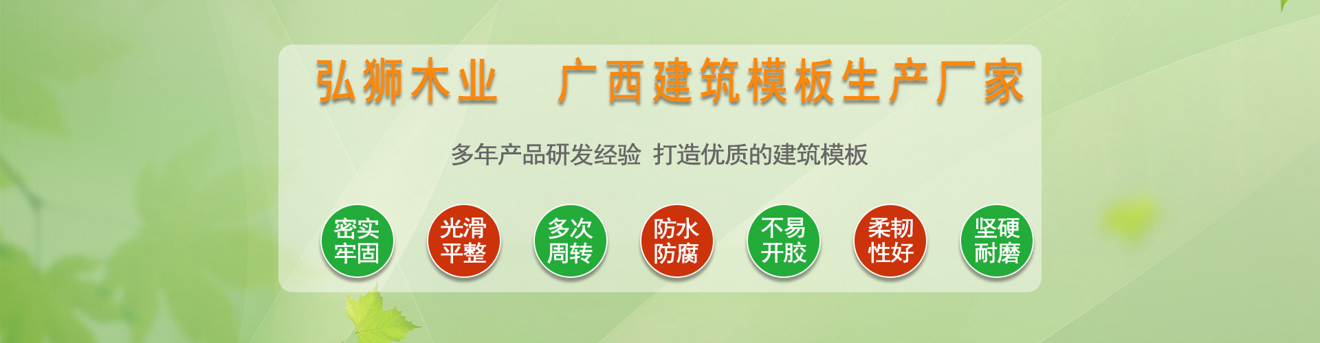 廣西弘獅木業(yè)有限公司是一家專業(yè)從事建筑模板研發(fā)、制造的綜合性高新技術企業(yè),自成立以來一直致力于建筑模板的研發(fā)、生產、銷售,公司擁有200畝的刨板、曬板基地和100畝的模板生產車間,目前擁有50條專業(yè)生產線,日產量達到4萬張/日。公司從采購木材到生產模板都嚴格執(zhí)行,所有成品都要經過嚴格檢測才安排給客戶發(fā)貨。